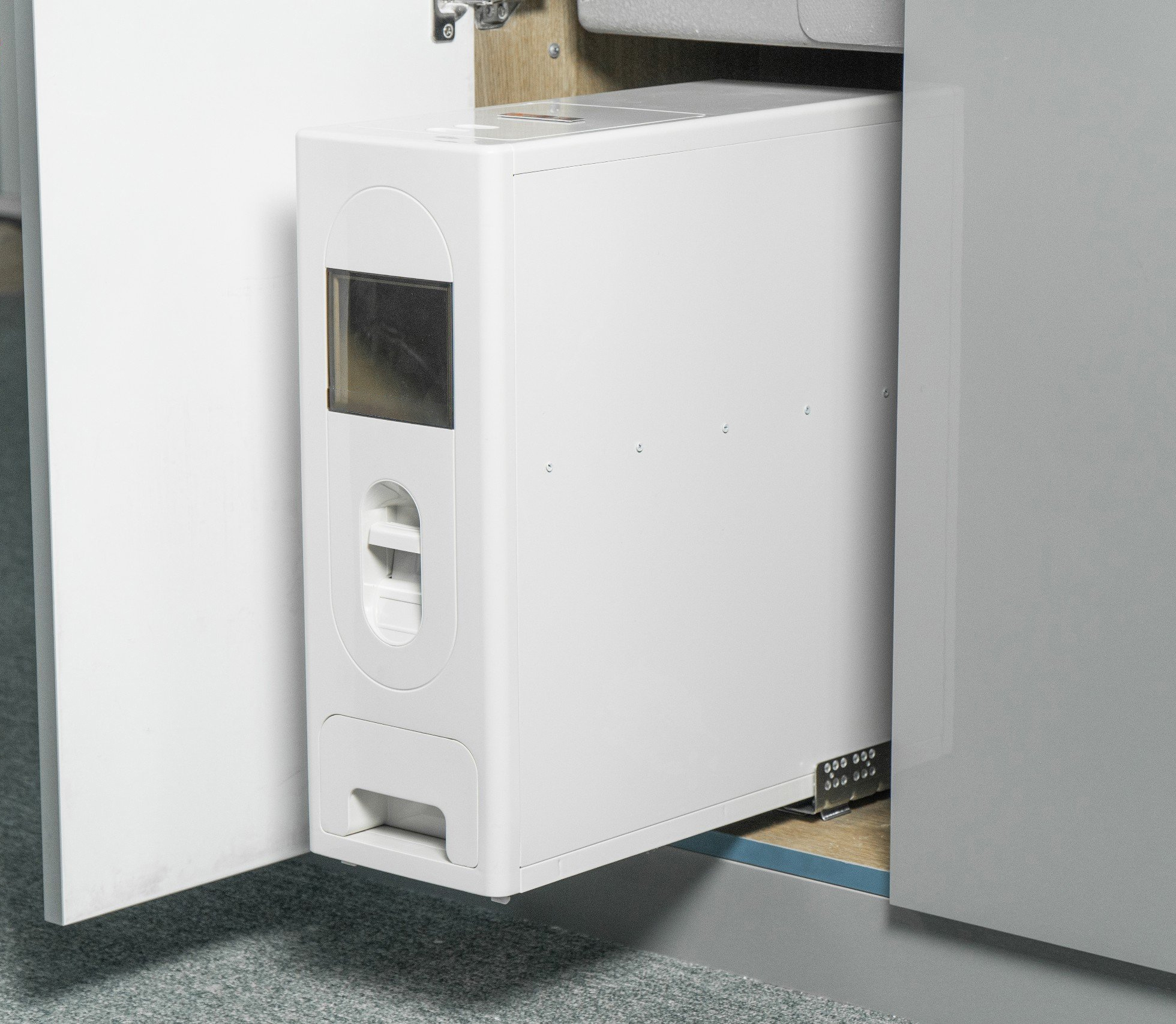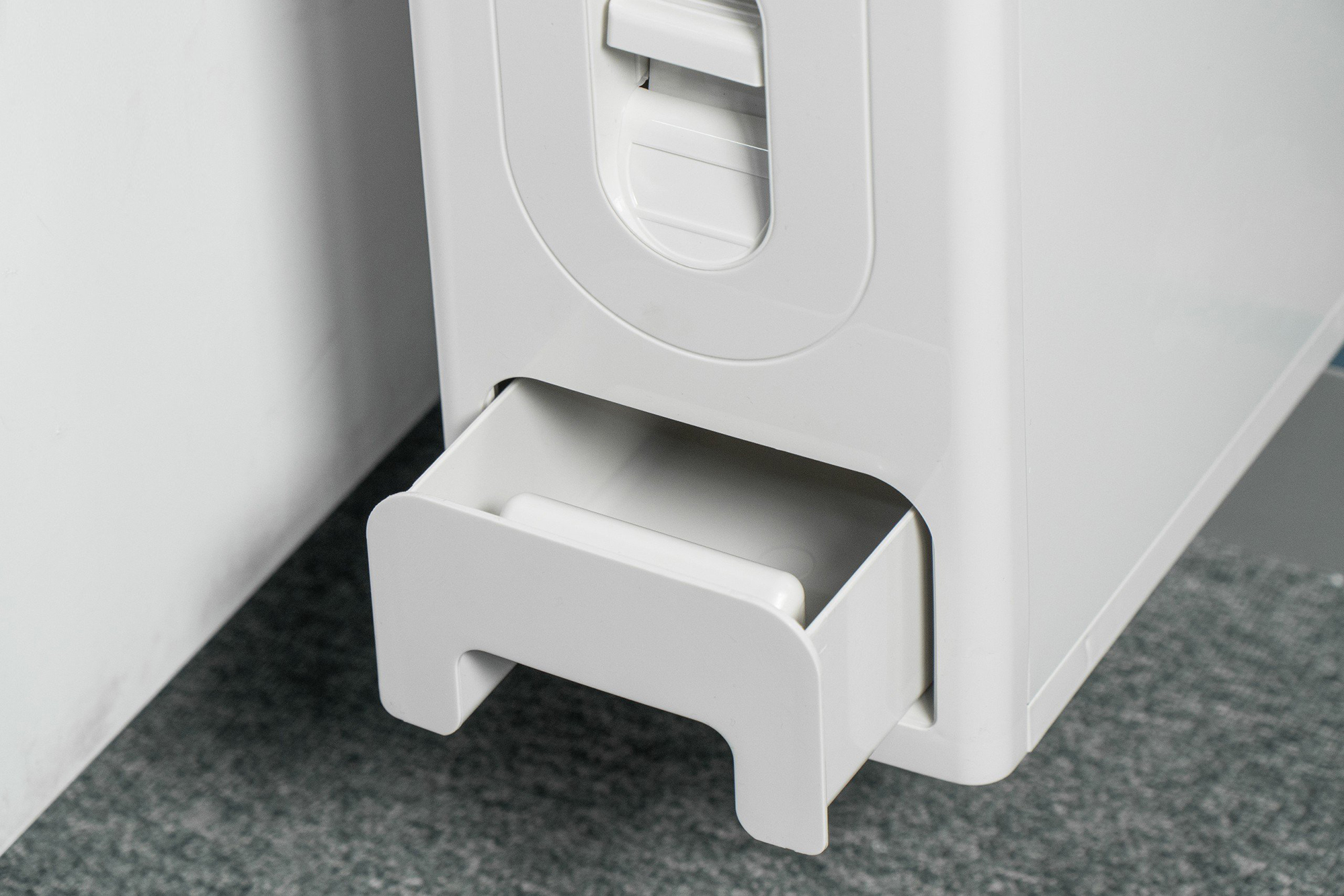 Trọng lượng thùng gạo âm tủ rất nhẹ và nhỏ gọn, dễ dàng lắp đặt, vận chuyển. Thùng được lắp âm tủ, tích hợp hệ thống ray trượt giảm chấn giúp kéo mở nhẹ nhàng, không gây tiếng ồn. Thiết kế tuy nhỏ gọn nhưng sức chứa lại lớn tối đa có thể lên tới 15kg gạo. Phù hợp cho cả gia đình 4-5 người ăn trong 1 tháng.