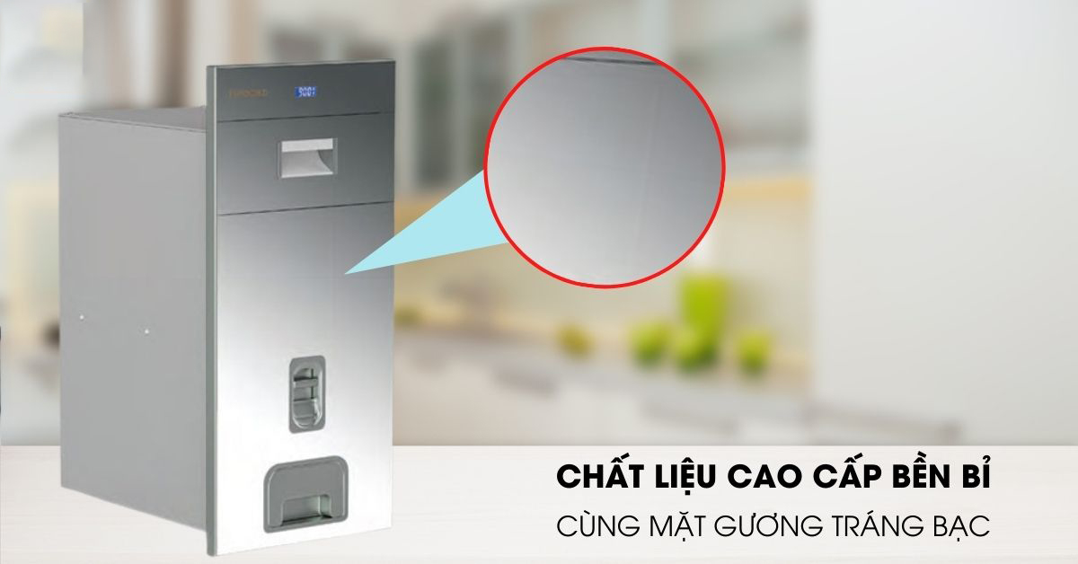 Thùng gạo điện tử Eurogold B301 có thiết kế bề mặt gương tráng bạc sáng bóng giúp tô điểm thêm cho không gian bếp của gia đình. Kiểu dáng lắp âm tủ tiết kiện diện tích và tận dụng tối đa những không gian bếp nhỏ. Ngoài ra, sản phẩm còn có cấu tạo nắp khép kín giúp tránh tình trạng ẩm mốc và côn trùng xâm nhập.