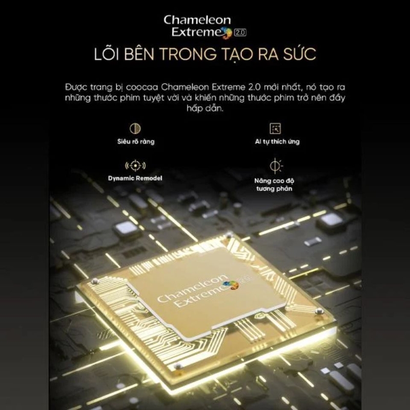 Công nghệ Chameleon Extreme 2.0 trên Coocaa Google TV QLED 65 inch 4K 65Y73 Pro sử dụng trí tuệ nhân tạo AI để phân tích và tối ưu hóa chất lượng hình ảnh. Để phát triển công nghệ này, các kỹ sư Coocaa đã phân tích một lượng dữ liệu khổng lồ và áp dụng 7 mô hình điều chỉnh khác nhau. Nhờ đó, tivi Coocaa 65Y73 Pro mang đến những thước phim sống động và cuốn hút.