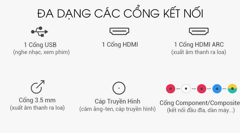 Với các cổng kết nối đa dạng như: HDMI, USB,… sẽ giúp người dùng có thể dễ dàng đưa lên màn hình tivi 32 inch những dữ liệu từ bên ngoài.
