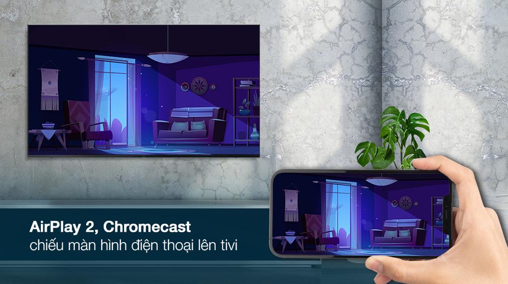 – Ngài ra có thể dễ dàng chiếu màn hình từ điện thoại lên tivi thông qua các tính năng AirPlay 2 (iPhone) và Chromecast giúp nâng cao hiệu suất công việc, giải trí.