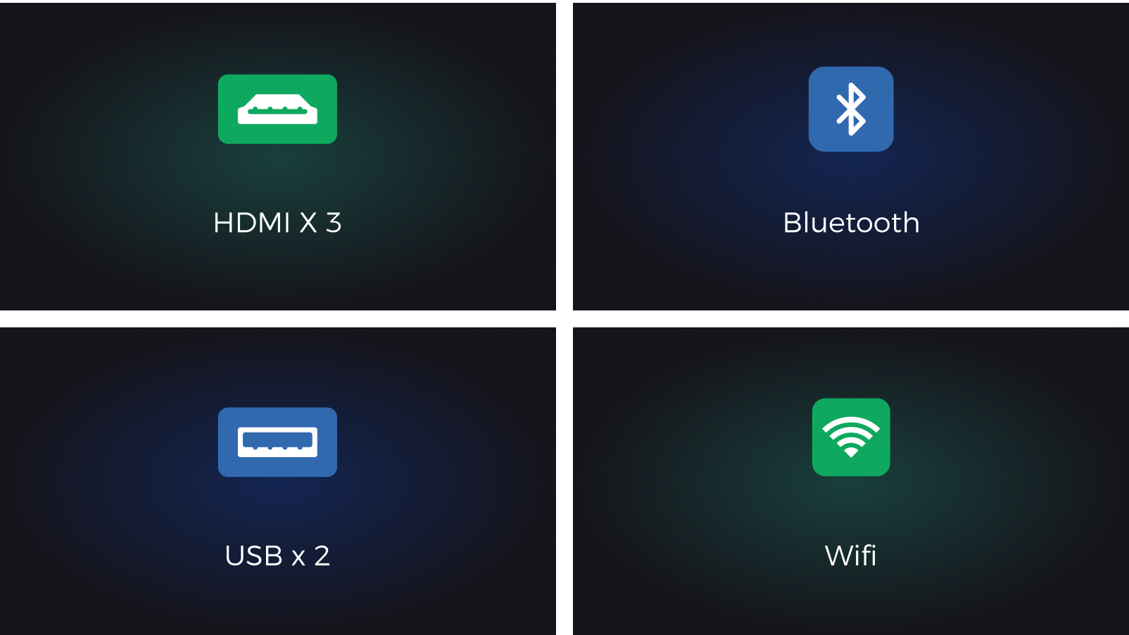 Vsmart TV tích hợp đầy đủ các cổng kết nối cần thiết cho dàn giải trí tại gia. Kết nối không dây với Wifi và Bluetooth. Tích hợp 3 cổng HDMI cho phép kết nối nhiều thiết bị cùng lúc.