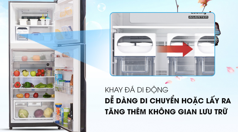 Khay đá được thiết kế có thể di động cực kỳ linh hoạt, nên bạn hoàn toàn có thể tháo rời ra để có thêm không gian bảo quản thực phẩm hay thuận tiện hơn trong quá trình vệ sinh tủ lạnh.