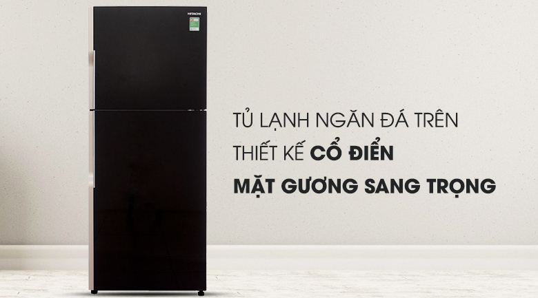 Tủ lạnh Hitachi Inverter 335 lít R-VG400PGV3 GBK có thiết kế ngăn đá phía trên quen thuộc, cùng mặt gương sáng bóng kết hợp với tông màu đen sang trọng, hứa hẹn sẽ làm nổi bật không gian bếp của ngôi nhà bạn.