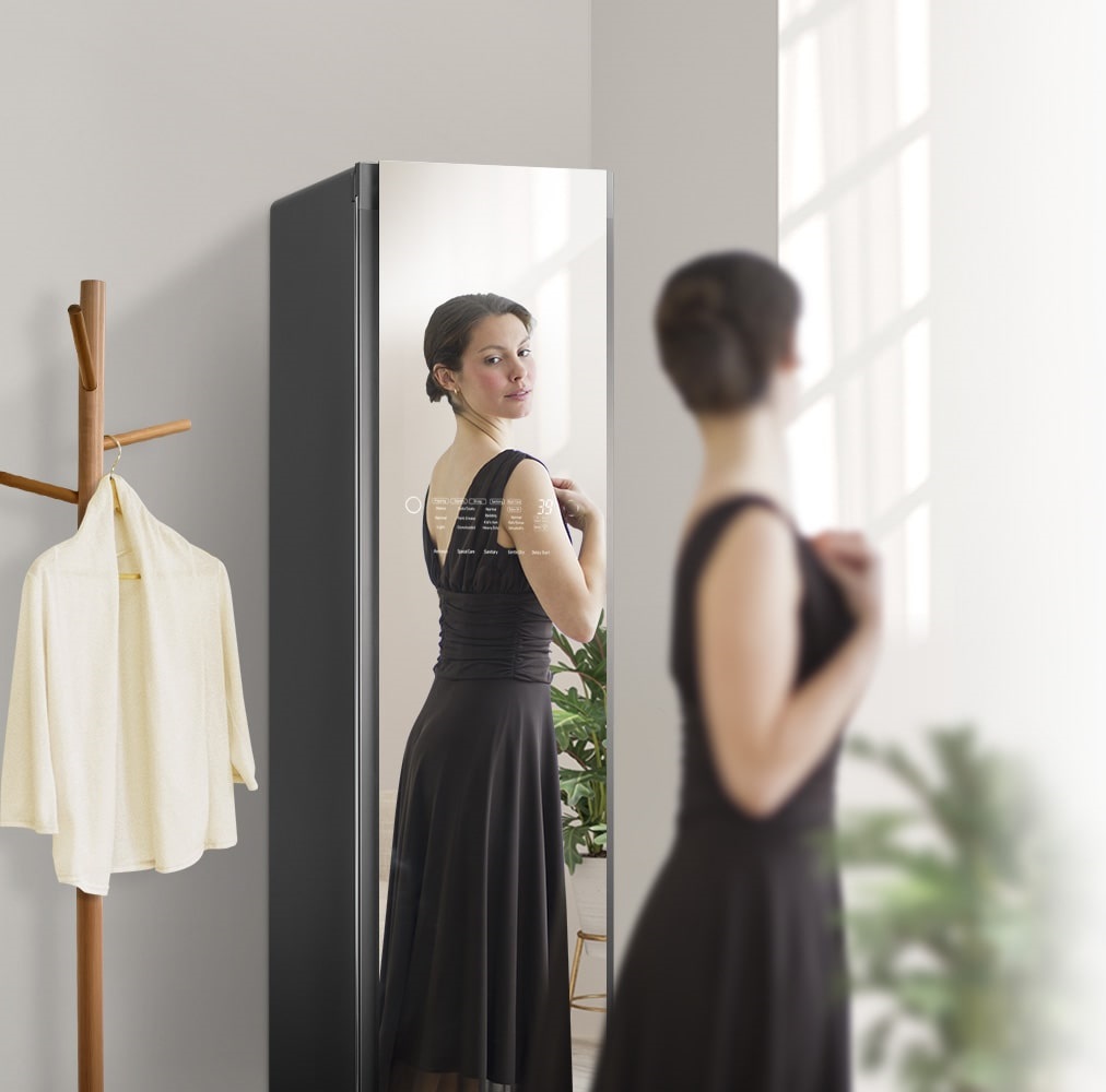 Mặt ngoài hấp dẫn của LG Styler với Thiết kế kiểu gương có thể bổ sung cho thiết kế của bất kỳ nơi nào trong ngôi nhà bạn. Bạn có thể lấy quần áo ra và mặc thử trước LG Styler.