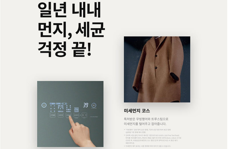 • Công nghệ giặt: Công nghệ hơi nước True steam diệt tác nhân dị ứng