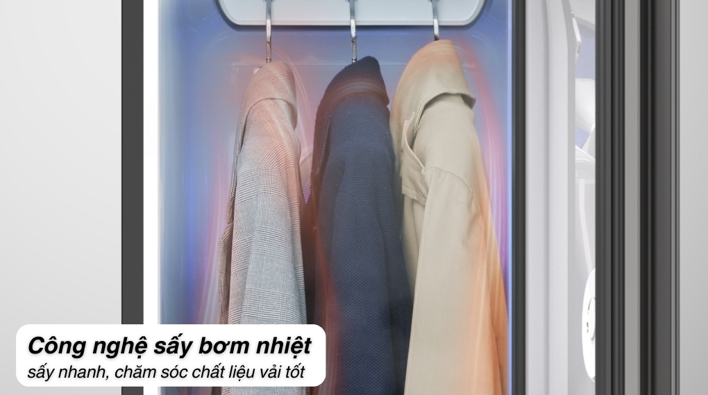 – Cơ chế thổi khí nóng đa chiều phân bổ nhiệt đồng đều trên toàn bộ bề mặt vải, kết hợp với quá trình khử khuẩn bằng hơi nước và tia UV, giúp loại bỏ vi khuẩn, mùi hôi và các tác nhân gây dị ứng, mang lại cảm giác sạch sẽ, dễ chịu cho người mặc.