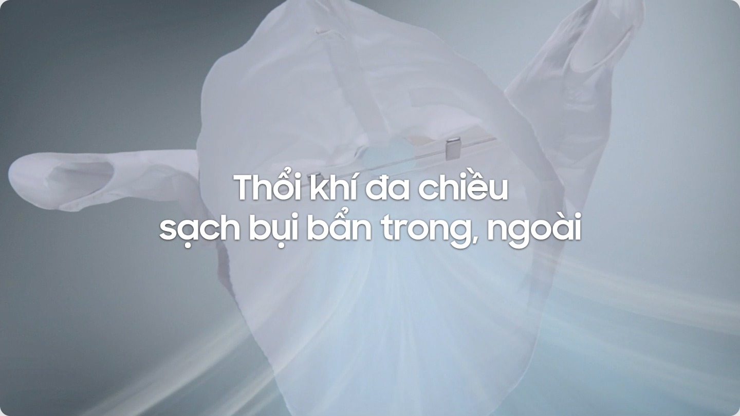 Hệ thống thổi khí Dual JetAir tạo luồng khí mạnh mẽ đa chiều từ phía trên, nhanh chóng thổi sạch bụi bẩn cả bên ngoài và tận sâu các lớp bên trong quần áo, đồng thời khử mùi hiệu quả đến 99%.