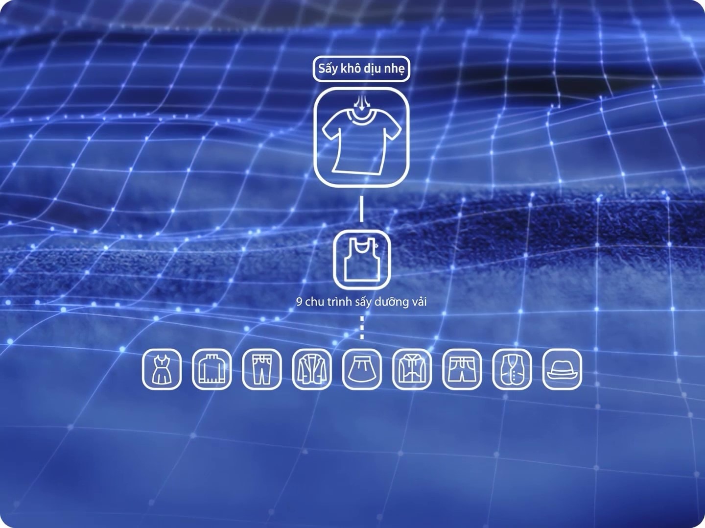 Công nghệ AI Heatpump liên tục cảm biến độ ẩm quần áo, phát hiện chính xác mức độ khô để tự động điều chỉnh thời gian sấy. Áo quần được sấy khô đồng đều & bảo vệ tối đa khỏi nguy cơ hư hỏng do sấy quá giờ. Đồng thời, dưỡng bền màu, bền chất liệu.