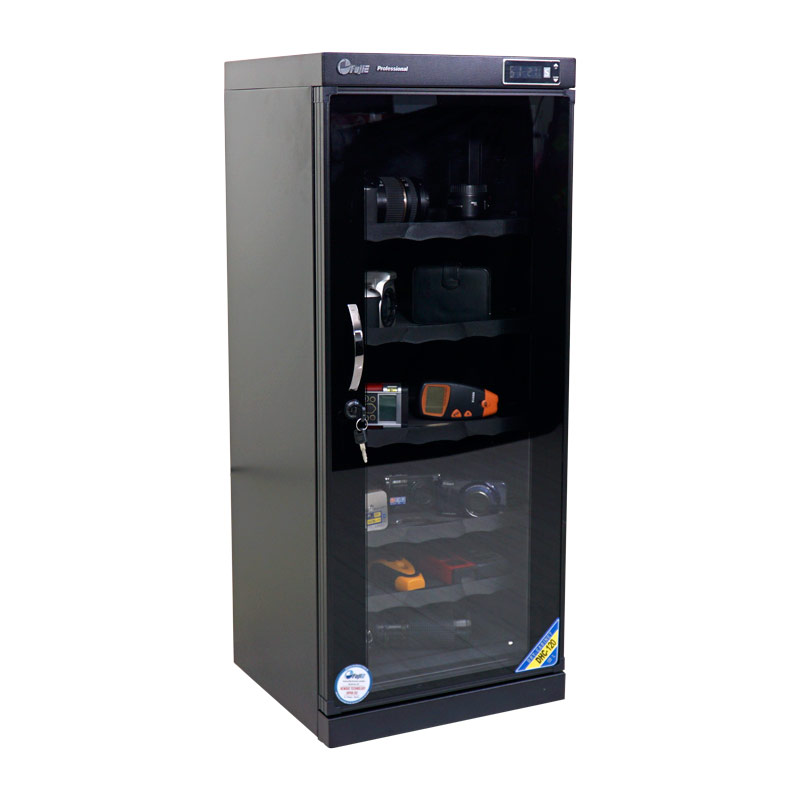 Tủ chống ẩm chuyên dụng kỹ thuật số hiệu FujiE DHC120 được sản xuất trên dây chuyền hiện đại đạt tiêu chuẩn quốc tế với cơ chế hút ẩm bằng IC gọn nhẹ, tốc độ hút ẩm nhanh gấp 10 lần và tiêu hao điện năng chỉ bằng 1/10 so với sản phẩm sử dụng công nghệ cũ.