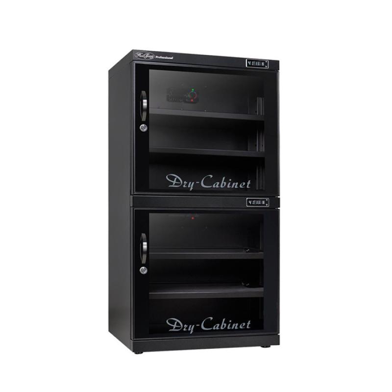 – Tủ gồm có hai khoang, có 2 đồng hồ hiển thị độ ẩm/nhiệt độ tại mỗi khoang khác nhau. Cánh cửa kính 2 lớp chống xước được thiết kế chịu sự va đập và đảm bảo tuyệt đối độ ẩm bên trong với hệ thống gioăng cao su từ bao quanh tạo nên sự chắc chắn mỗi khi mở ra đóng vào.