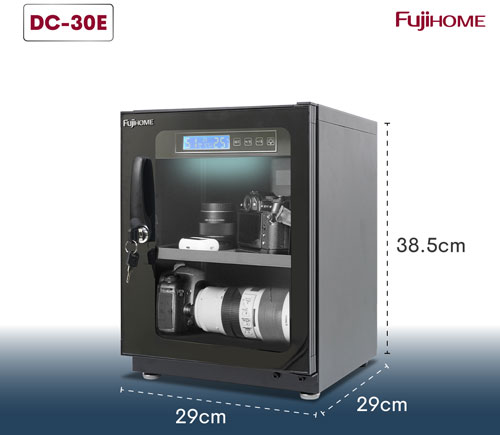 Tủ chống ẩm thế hệ mới Fujihome DC-30E có dung tích 30 lít, có 1 khay có thể tháo rời điều chỉnh lên xuống, khay làm từ kim loại sơn tĩnh điện bền bỉ và ứng dụng công nghệ kiểm soát độ ẩm hiện đại sẽ mang đến sự bảo vệ hoàn hảo cho các thiết bị nhạy cảm như máy ảnh, ống kính hoặc tài liệu quan trọng.