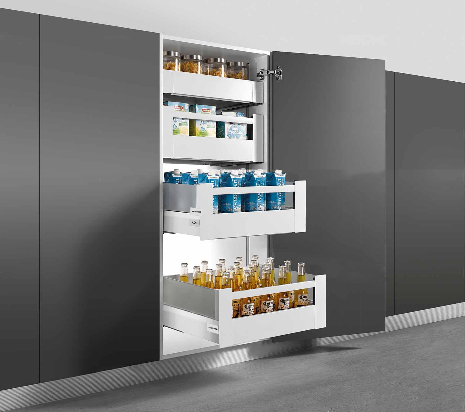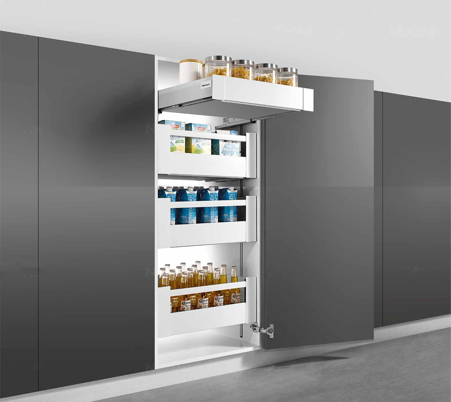 Thanh trượt đồng bộ đóng êm HURMAR thương hiệu Đức, chuyển động mượt mà, tải trọng tối đa là 30kg/tầng. Cấu trúc lắp đặt nhanh dễ dàng và thuận tiện.