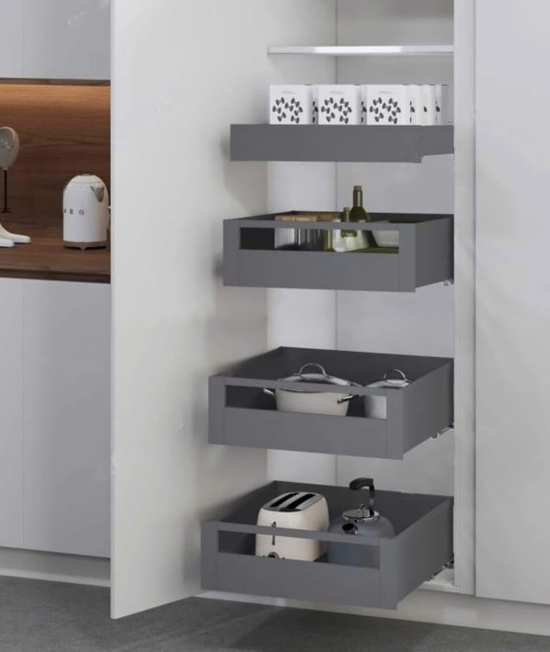 Thiết kế khá nhỏ gọn, giúp bạn tận dụng được tối đa không gian lưu trữ hệ tủ bếp. Tủ kho độc lập 4 tầng Eurogold EUM23460G được thiết kế bao gồm rổ đựng và hệ thống ray trượt giảm chấn. Việc sử dụng (kéo ra/ đẩy vào) trở nên êm ái mà vô cùng nhẹ nhàng.