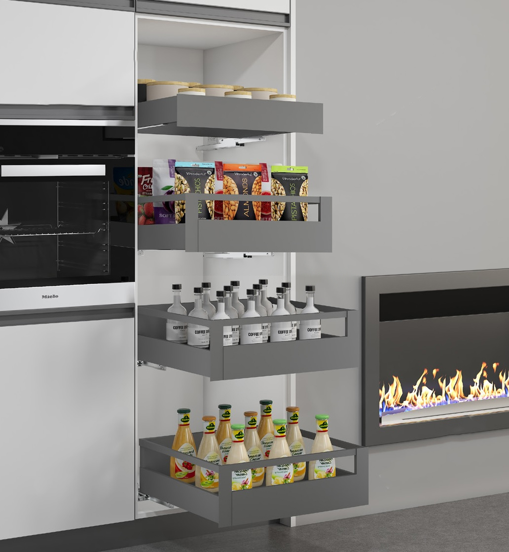 Thiết kế khá nhỏ gọn, giúp bạn tận dụng được tối đa không gian lưu trữ hệ tủ bếp. Tủ kho độc lập 4 tầng Eurogold EUM23490G được thiết kế bao gồm rổ đựng và hệ thống ray trượt giảm chấn. Việc sử dụng (kéo ra/ đẩy vào) trở nên êm ái mà vô cùng nhẹ nhàng.