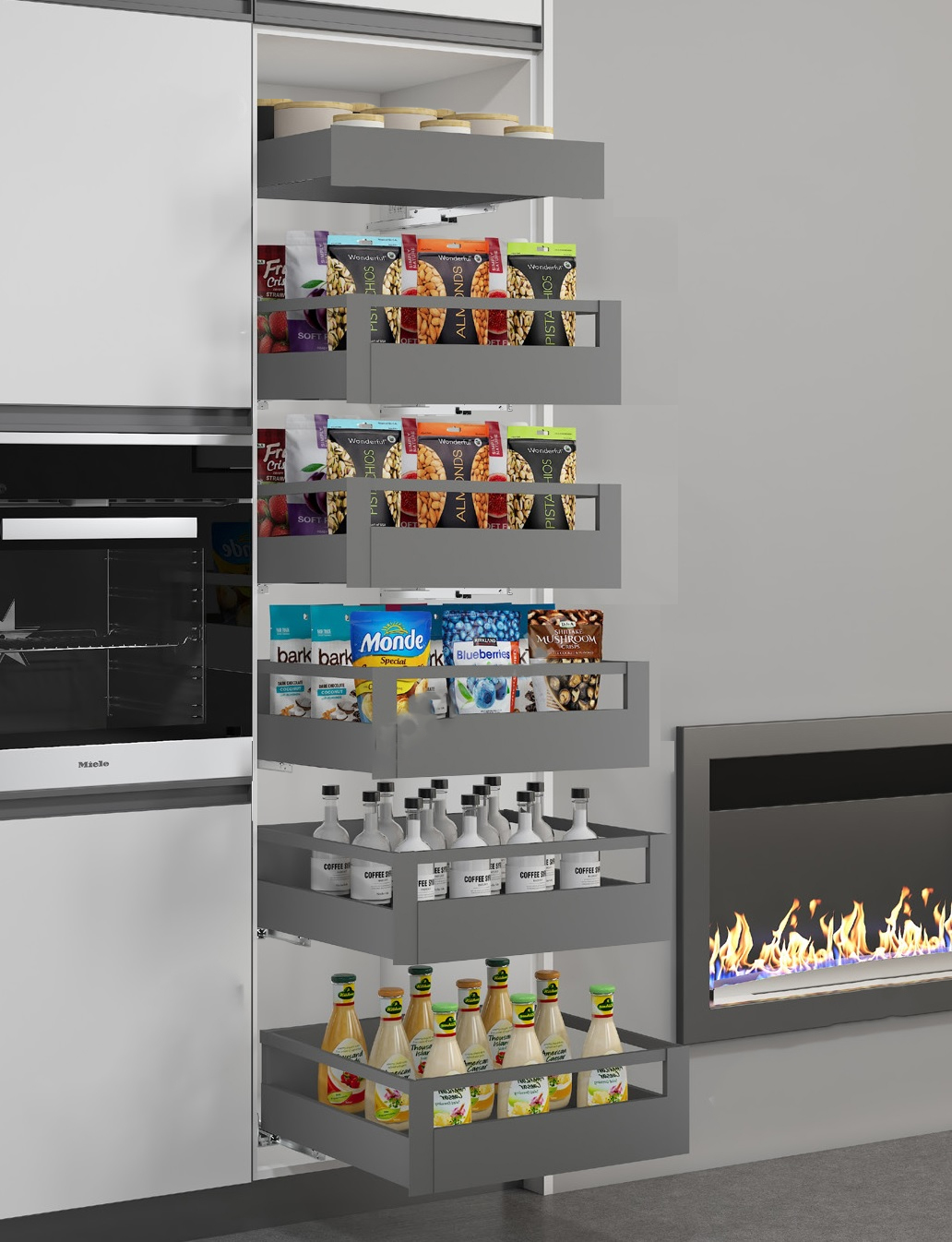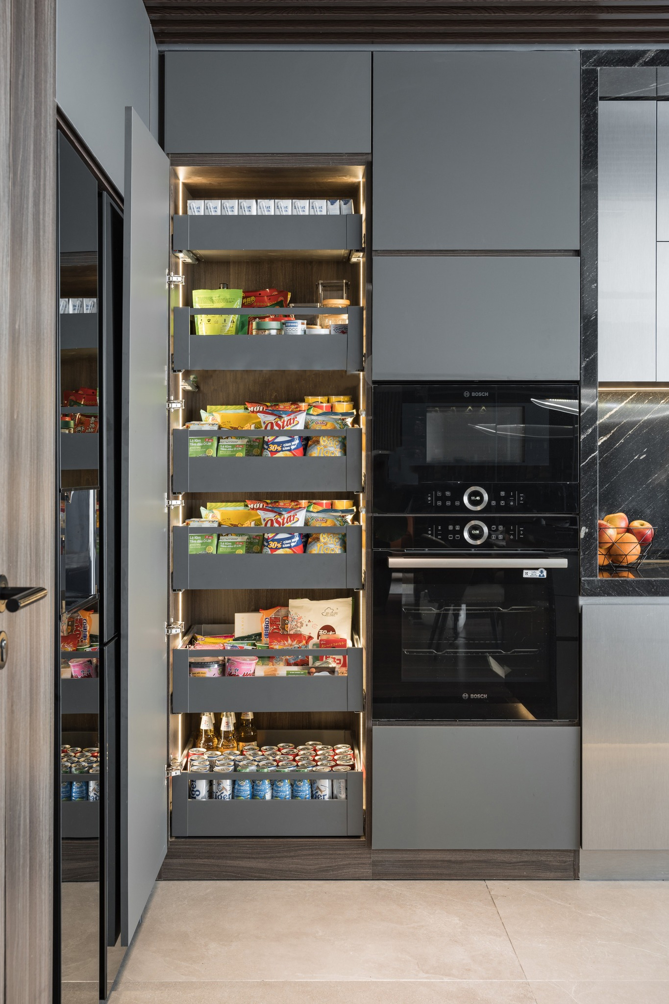 Thiết kế khá nhỏ gọn, giúp bạn tận dụng được tối đa không gian lưu trữ hệ tủ bếp. Tủ kho độc lập 6 tầng Eurogold EUM23660G được thiết kế bao gồm rổ đựng và hệ thống ray trượt giảm chấn. Việc sử dụng (kéo ra/ đẩy vào) trở nên êm ái mà vô cùng nhẹ nhàng.