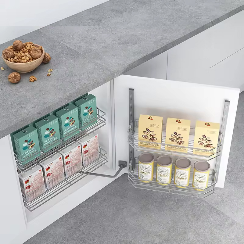 Các khay đựng được thiết kế linh hoạt phù hợp với nhiều kích thước chai lọ, gia vị, đồ khô… khác nhau trong không gian bếp.