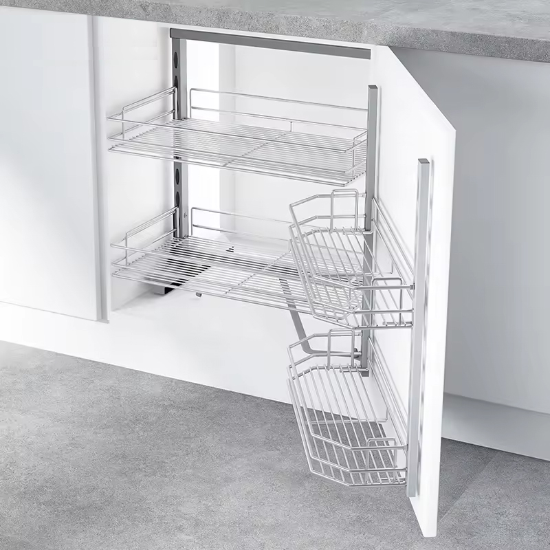 Khi đóng tủ bộ rổ chứa phía trong tủ sẽ trượt vào phía trong nhường chỗ cho bộ rổ ngoài kéo vào. Bộ rổ trong và ngoài khi đóng tủ sẽ nằm thẳng hàng. Vì vậy, khi đóng cửa tủ sẽ khít chặt không cho gián, côn trùng vào trong tủ.