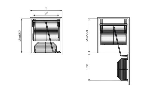 Khi đóng tủ bộ rổ chứa phía trong tủ sẽ trượt vào phía trong nhường chỗ cho bộ rổ ngoài kéo vào. Bộ rổ trong và ngoài khi đóng tủ sẽ nằm thẳng hàng. Vì vậy, khi đóng cửa tủ sẽ khít chặt không cho gián, côn trùng vào trong tủ.