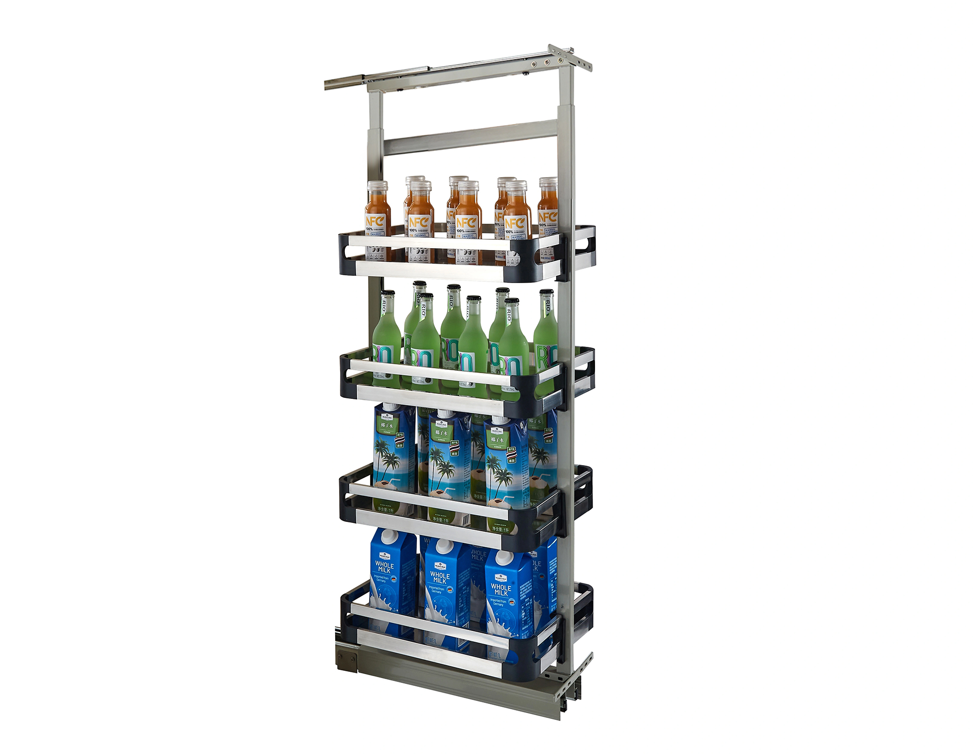 Thay vì xếp đồ đạc một cách không khoa học tạo nên sự bề bộn cho bếp thì hệ tủ kho chứa đồ khô sẽ giúp căn bếp luôn sạch sẽ, gọn gàng. Thiết kế 4 tầng, 4 rổ đựng, rổ có thể chứa lên tới 5kg bạn có thể tha hồ cất gọn tất cả các vật dùng, đồ ăn.. vào khoang tủ phía sau cánh cửa tủ.