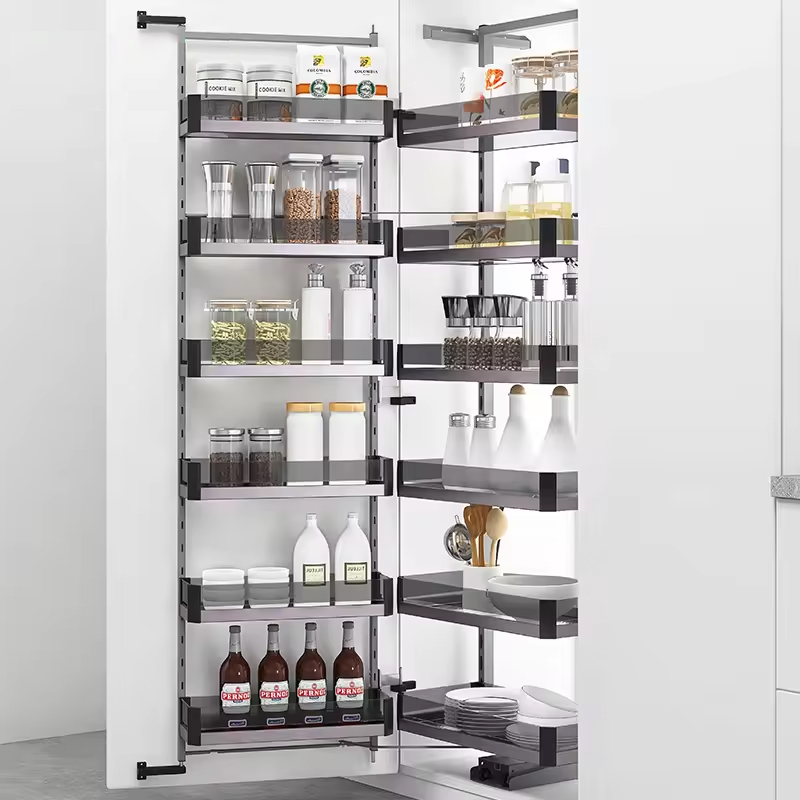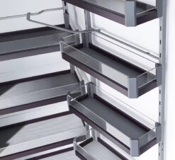 Các khay đựng được thiết kế linh hoạt phù hợp với nhiều kích thước chai lọ, gia vị, đồ khô… khác nhau trong không gian bếp.