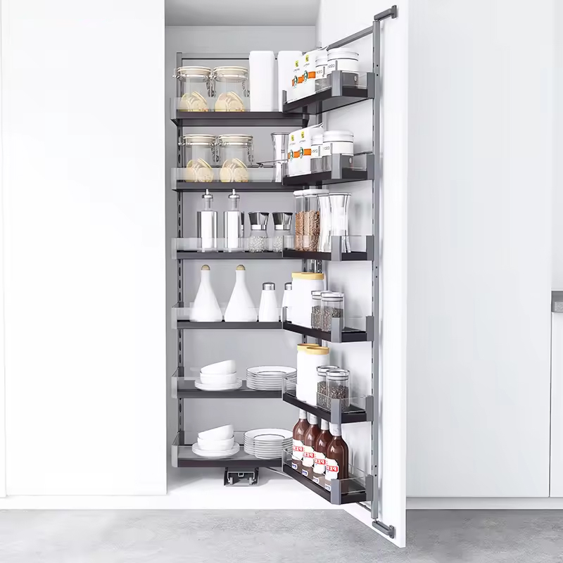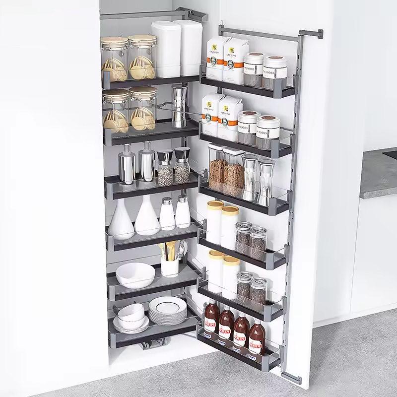 Thay vì xếp đồ đạc một cách không khoa học tạo nên sự bề bộn cho bếp thì tủ kho sẽ đem tới cho bạn sức chứa vô cùng lớn giúp căn bếp luôn sạch sẽ, gọn gàng. Với thiết kế 6 tầng, 12 rổ đựng, rổ lớn có thể chứa 5kg và rổ nhỏ có thể chứa 3kg bạn có thể tha hồ cất gọn tất cả các vật dùng, đồ ăn.. vào khoang tủ phía sau cánh cửa tủ.
