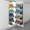 Thiết kế dạng hộp chữ U góp phần tạo cảm giác chắc chắn, khỏe khoắn cho hệ tủ kho chứa đồ khô. Ngoài ra với thiết kế đơn giản 6 tầng, 12 rổ đựng thì được thiết kế thu gọn trong khoang tủ góp phần tăng tính thẩm mĩ, tiết kiệm không gian cho căn bếp. Đặc biệt phù hợp với gia đình hộ chung cư, gia đình có không gian bếp nhỏ.