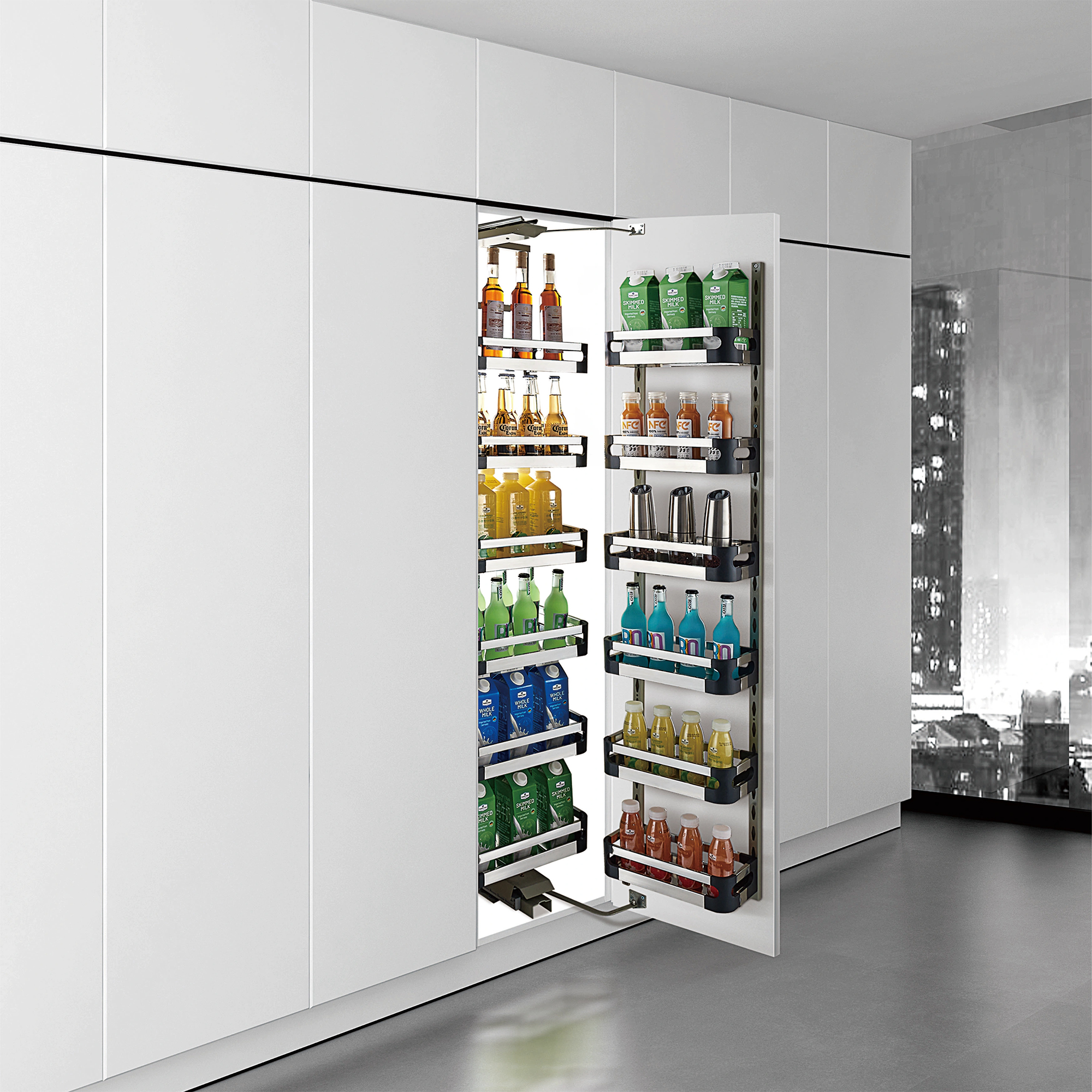 Thay vì xếp đồ đạc một cách không khoa học tạo nên sự bề bộn cho bếp thì tủ kho sẽ đem tới cho bạn sức chứa vô cùng lớn giúp căn bếp luôn sạch sẽ, gọn gàng. Với thiết kế 6 tầng, 12 rổ đựng, rổ lớn có thể chứa 5kg và rổ nhỏ có thể chứa 3kg bạn có thể tha hồ cất gọn tất cả các vật dùng, đồ ăn.. vào khoang tủ phía sau cánh cửa tủ.