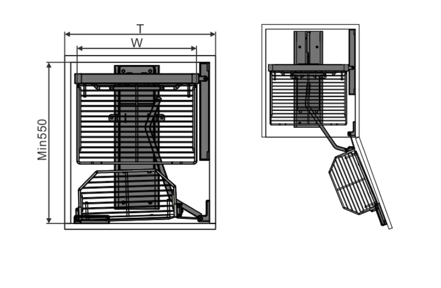 Khi đóng tủ bộ rổ chứa phía trong tủ sẽ trượt vào phía trong nhường chỗ cho bộ rổ ngoài kéo vào. Bộ rổ trong và ngoài khi đóng tủ sẽ nằm thẳng hàng. Vì vậy, khi đóng cửa tủ sẽ khít chặt không cho gián, côn trùng vào trong tủ.