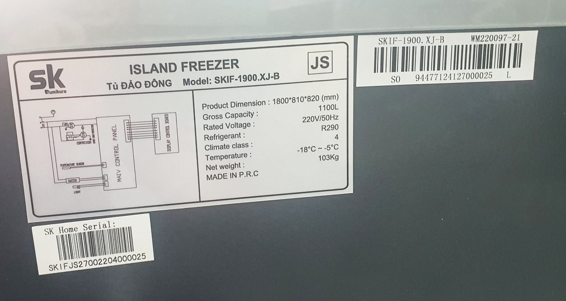 Tủ đông SKIF-1900.XJB 1100 lít sử dụng Gas R290 giúp tiết kiệm lượng điện năng tiêu thụ. Bảo vệ sức khỏe người dùng, thân thiện với môi trường mà còn giúp tiết kiệm điện năng tối đa.