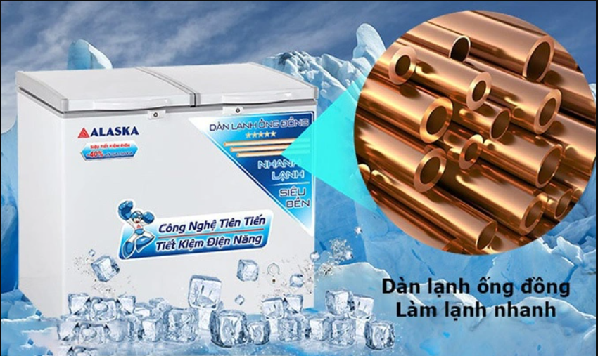 Tủ đông Alaska 2 ngăn, 2 cánh bao gồm tủ đông và tủ mát riêng biệt. Thích hợp với gia đình, quán nước giải khát, tạp hóa nhỏ… Tủ đông Alaska đang được yêu thích bởi những ưu điểm vượt trội. Tủ Đông Alaska BCD-5068N dung tích đến 500 lít đáp ứng nhu cầu sử dụng thoải mái của gia đình có nhiều thành viên. Hai ngăn lạnh và mát giúp dễ dàng phân loại thực phẩm.