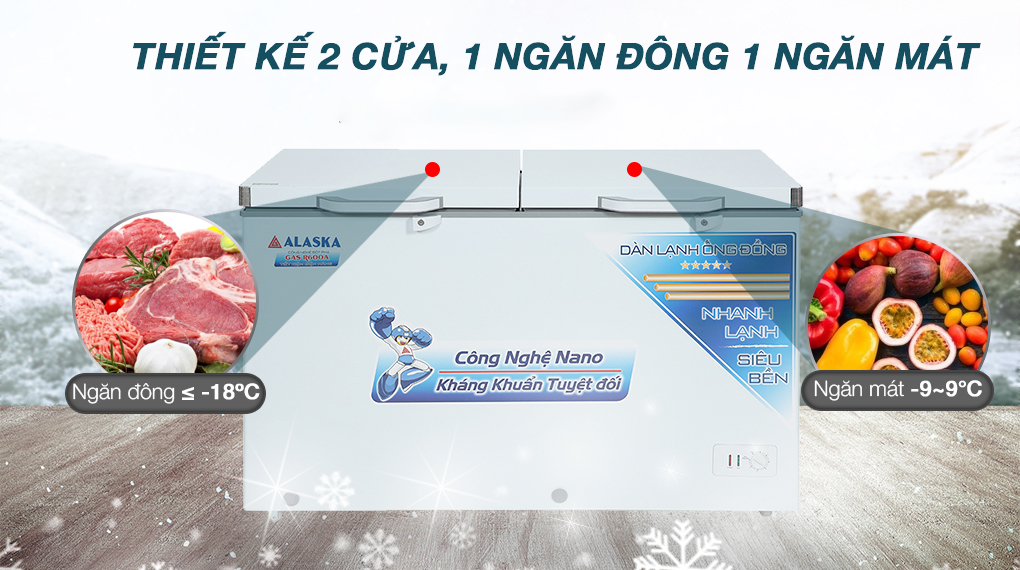 Tủ đông ALASKA BCD-5068N 2 ngăn 2 cánh dễ dàng phân chia thực phẩm