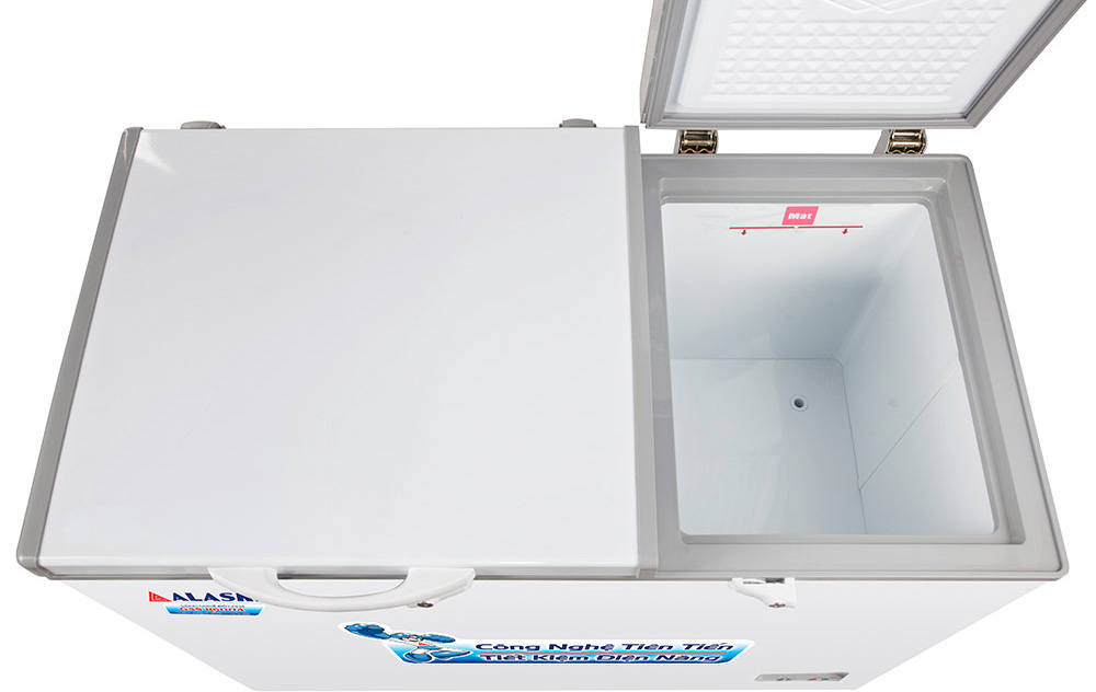Tủ đông 2 ngăn Alaska làm lạnh bằng compressor có độ bền cao, làm lạnh nhanh, sâu. Đồng thời tiết kiệm điện năng tối đa, giảm thiểu chi phí vận hành.