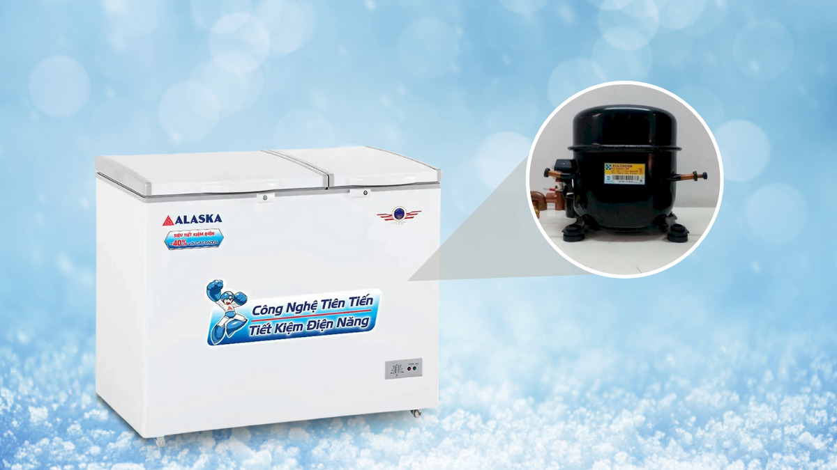 Bên cạnh khả năng làm lạnh mạnh mẽ, compressor còn vận hành cực kỳ tiết kiệm điện. Cụ thể theo thông số của nhà sản xuất cung cấp thì mức điện năng tiêu thụ của tủ đông này trong 24h chỉ rơi vào khoảng 0.53kW.h. Nhờ đó người dùng có thể yên tâm lựa chọn chiếc tủ đông mát Alaska này đồng hành trong thời gian dài.
