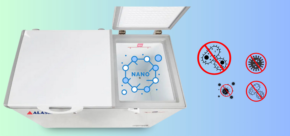 Bên trong lòng tủ Tủ Đông Mát Alaska BCD-3571 còn được phủ lớp nano có khả năng kháng khuẩn, ngăn chặn sự phát triển của nấm mốc sinh ra trong quá trình sử dụng. Điều này giúp không gian bên trong tủ luôn duy trì trạng thái sạch sẽ để bảo quản thực phẩm một cách tốt nhất.