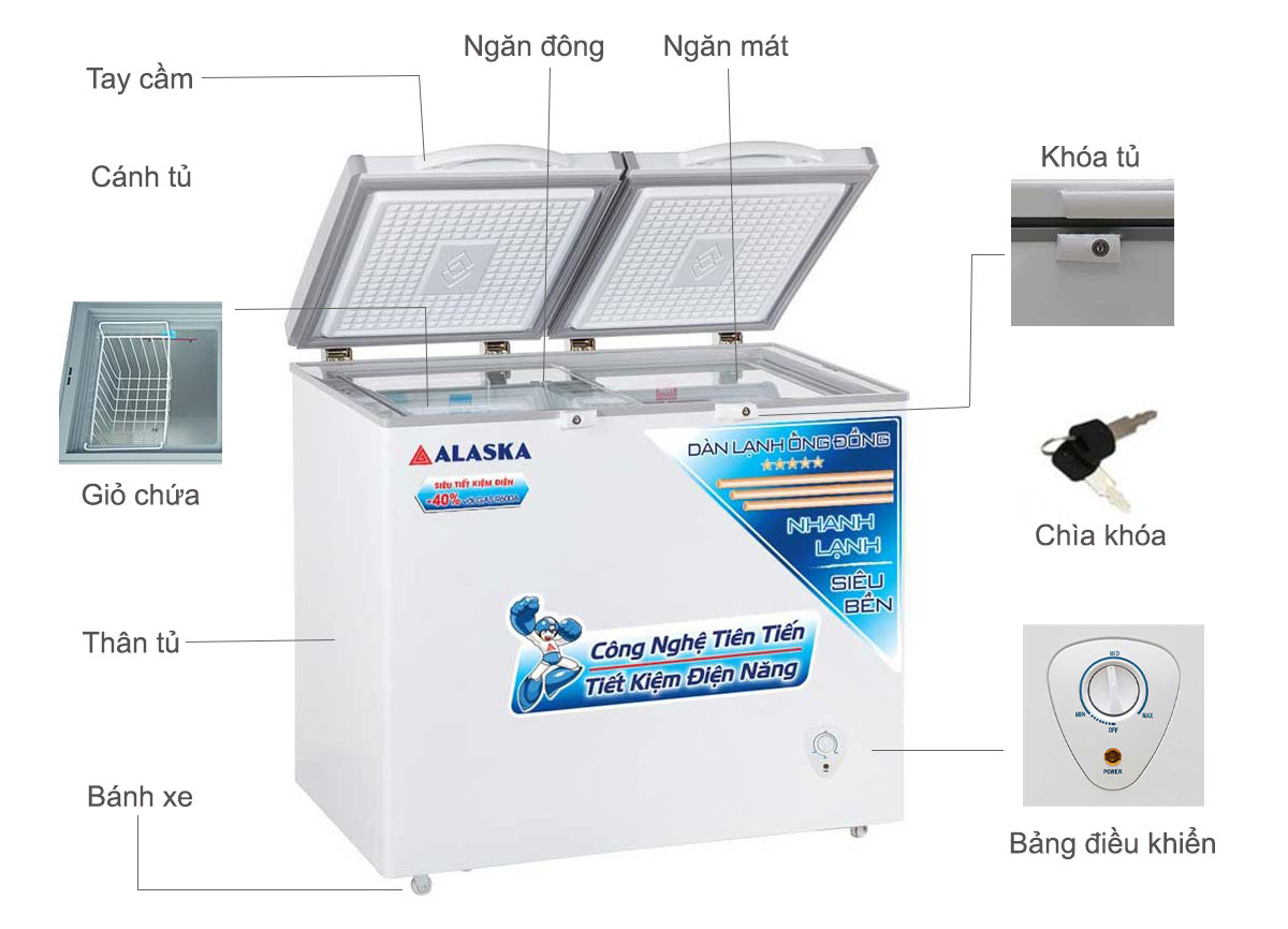 Sản xuất theo công nghệ Mỹ, tủ được thiết kế có lớp foam đầy giúp giữ lạnh tốt. Tủ đông Alaska có nút điều chỉnh nhiệt độ bên ngoài dễ dàng điều chỉnh nhiệt độ phù hợp với lượng thực phẩm được bảo quản.