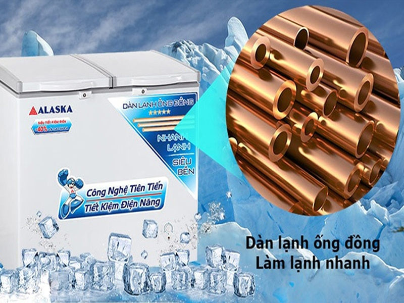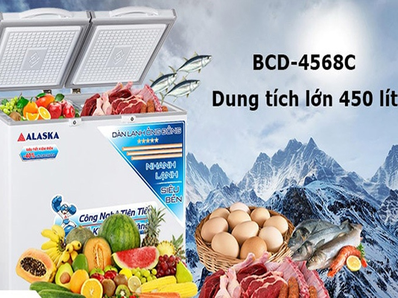 Tủ đông Alaska BCD-4568C tiết kiệm được công suất Block giảm tiêu thụ điện năng đem lại nguồn gas sạch thân thiện với môi trường. Với áp suất thấp, năng suất lạnh cao giúp lạnh nhanh.