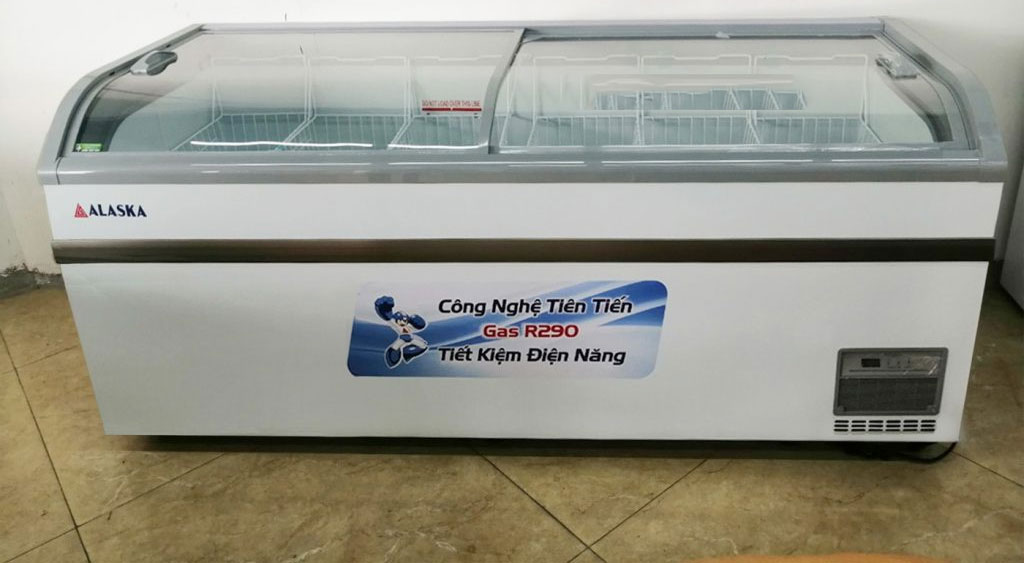 Tủ đông Alaska KC-550 sở hữu kiểu dáng nằm ngang, cửa kính cong sang trọng hiện đại.