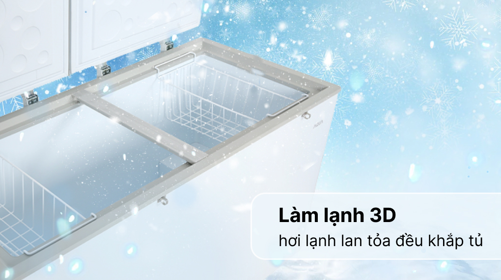 Với công nghệ làm lạnh 3D, luồng khí lạnh được di chuyển đồng đều khắp tủ đông và phủ toàn diện thực phẩm, giúp việc cấp đông hiệu quả cũng như duy trì và kéo dài thời gian bảo quản thực phẩm tốt hơn.