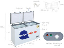 Tủ đông Darling với dung tích sử dụng 260 lít giúp người dùng có thể trữ một lượng lớn các loại thực phẩm. Trong đó dung tích ngăn mát là 154 lít, dung tích ngăn đông là 106 lít đáp ứng các nhu cầu thiết yếu lưu trữ thực phẩm cho các đại gia đình, quán ăn, nhà hàng, cửa hàng tạp hóa,…