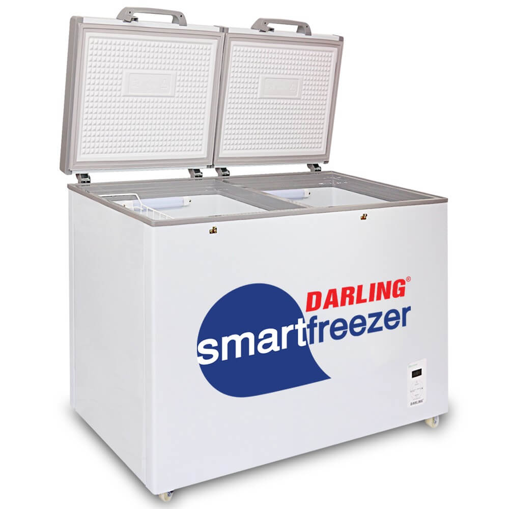 Tủ đông Darling Smart Freezer DMF – 3699WS thiết kế với hình dạng chữ nhật truyền thống, dễ dàng di chuyển với 4 bánh xe. Tủ đông có chế độ thông tin tự điều chỉnh, giúp tiết kiệm 20% điện năng so với tủ thông thường.