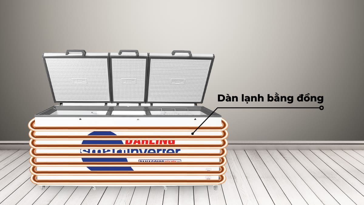 Tủ Đông Darling Inverter 1400 Lít DMF-1279ASI sử dụng dàn lạnh được làm hoàn toàn bằng đồng cực kỳ chắc chắn và có khả năng chống chịu cao với nhiều điều kiện môi trường. Đặc biệt đồng là vật liệu dẫn nhiệt tốt nên chiếc tủ đông Darling này có để làm lạnh nhanh và cấp đông sâu đến âm 30ºC cho toàn bộ thực phẩm bên trong. Nhờ đó lượng điện tiêu thụ cũng được giảm đi.