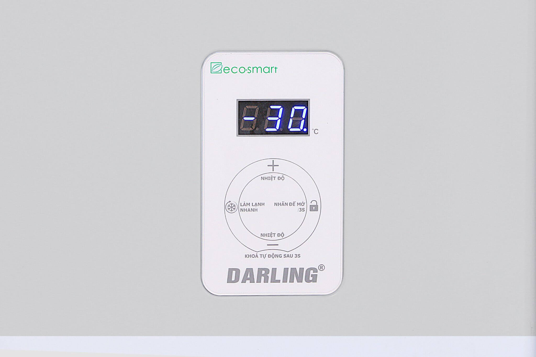 Tủ đông Darling sử dụng công nghệ Eco Smart trên bảng cảm ứng thông minh, điều chỉnh nhiệt độ chính xác 99,9%, dễ dàng điều khiển, tiết kiệm điện năng.