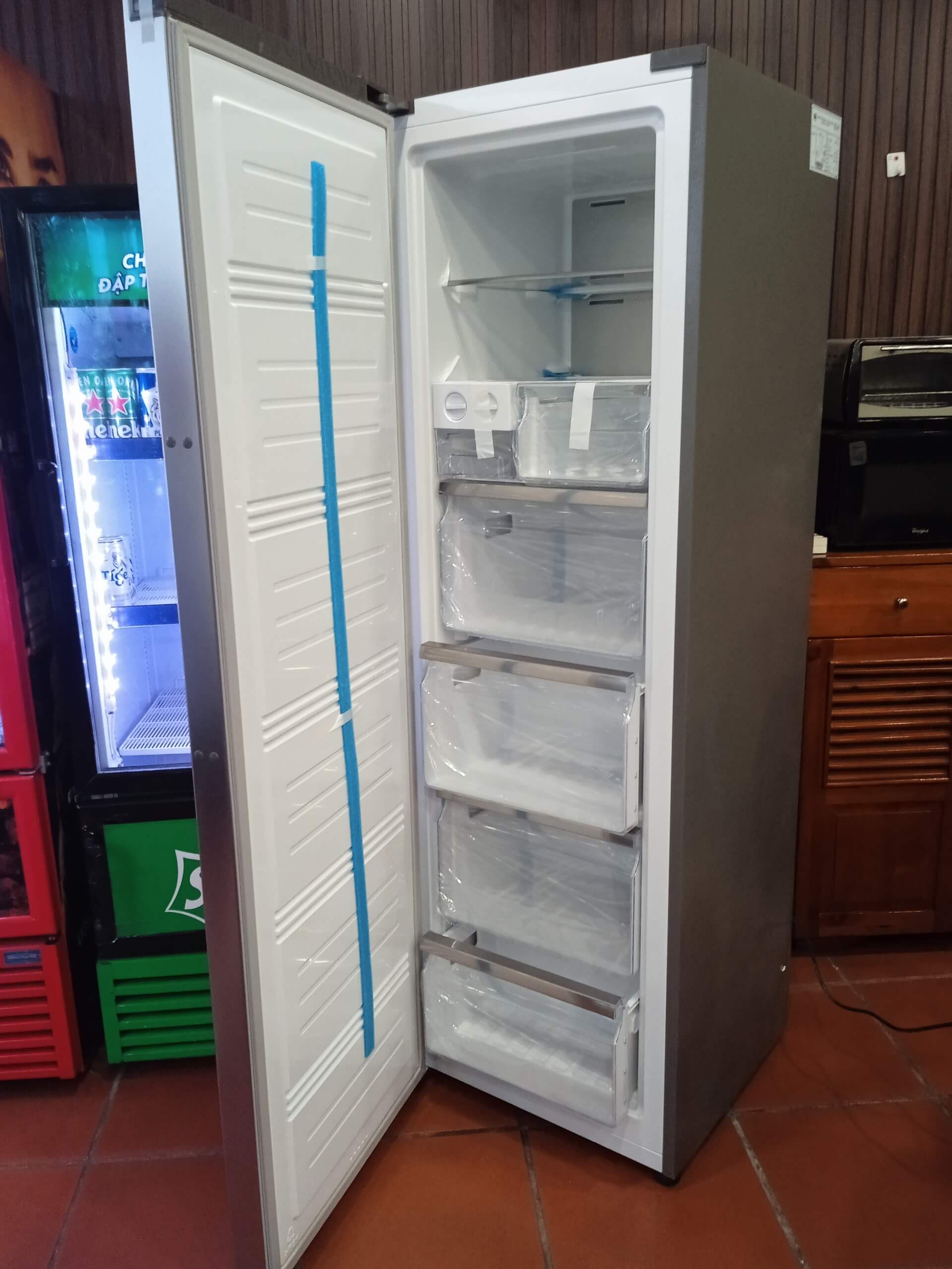 Tủ đông đứng có thiết kế đứng như 1 chiếc tủ lạnh truyền thống. Đồng thời, tủ được trang bị nhiều ngăn nhỏ bên trong tối ưu hóa không gian. Bạn có thể bảo quản nhiều loại thực phẩm hơn mà không lo thiếu diện tích.
