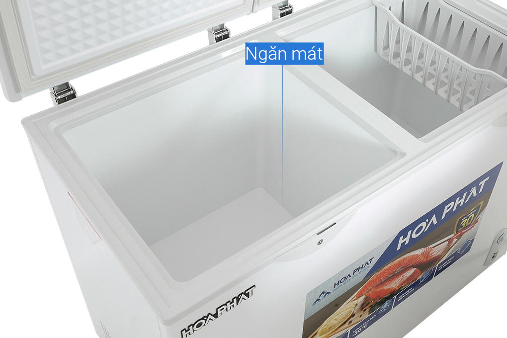 – Mẫu tủ đông Hòa Phát 271 lít này được thiết kế dạng tủ nằm, 1 ngăn đông, 1 ngăn mát và 2 cửa, có thể lắp đặt tại bất kỳ vị trí nào trong gian bếp.