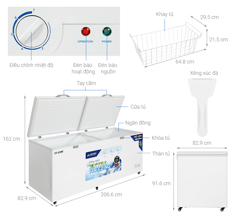– Xẻng cạo tuyết: Giúp người dùng loại bỏ các mảng bám tuyết trên thành tủ, để không làm ảnh hưởng đến hiệu quả cấp đông.
