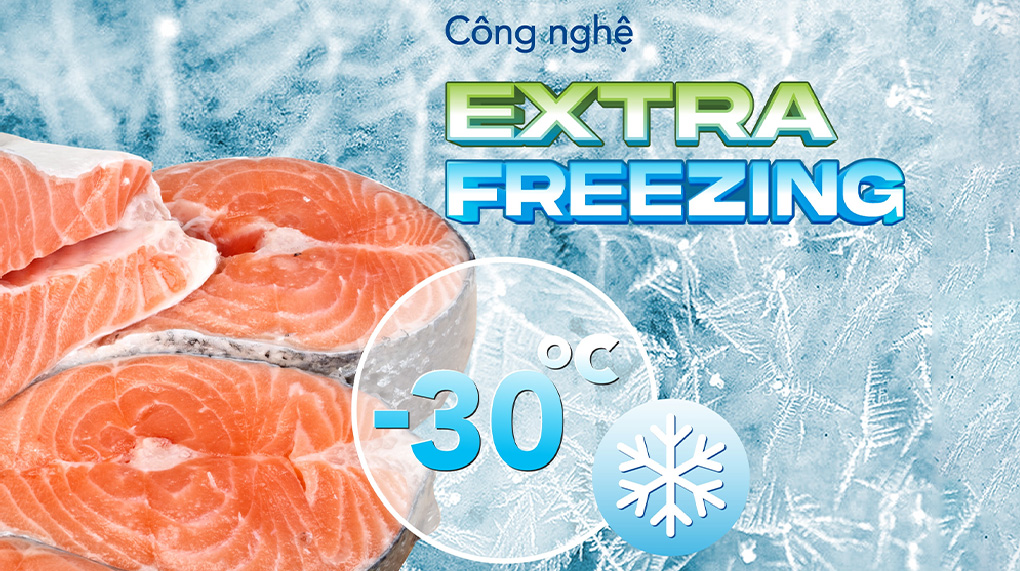 – Công nghệ làm lạnh Extra Freezing: Kết hợp với việc sử dụng máy nén có chất lượng cao, tủ đông có khả năng làm lạnh sâu đến -30°C, từ đó hỗ trợ cấp đông và bảo quản thực phẩm tươi sống được tốt hơn.