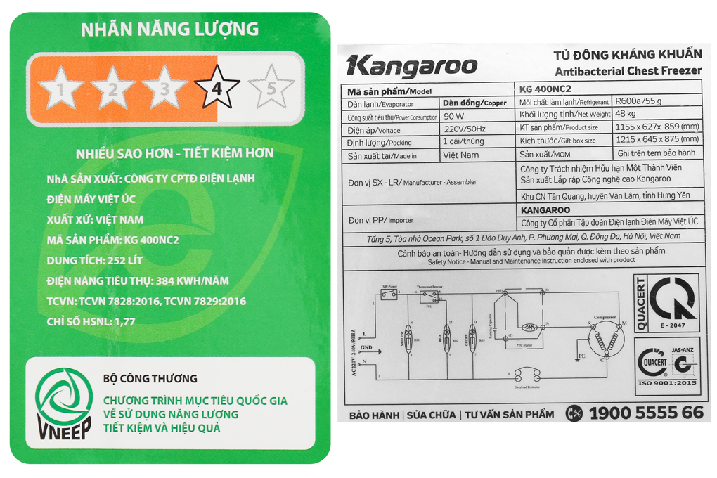 Nhờ dùng loại khí gas R600a mà chiếc tủ đông Kangaroo KG 400NC2 vừa giúp người sử dụng tiết kiệm tiền điện mỗi tháng đến 40 %, vừa đảm bảo yếu tố an toàn, thân thiện với môi trường.