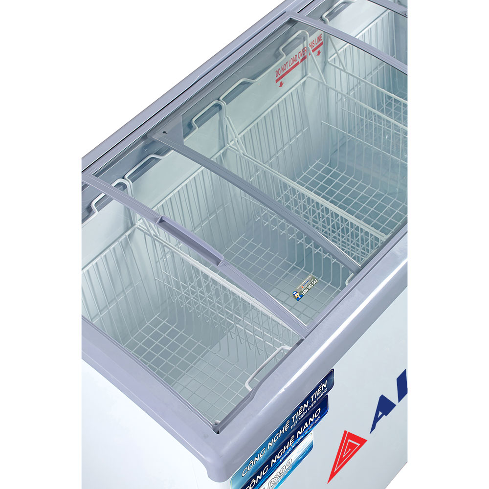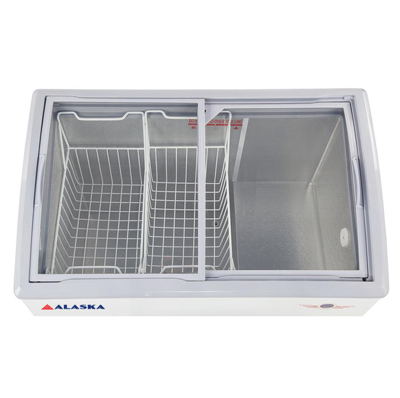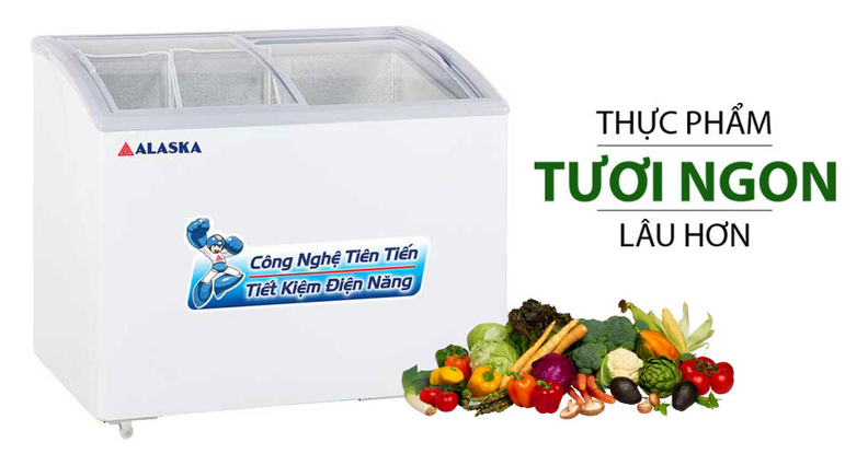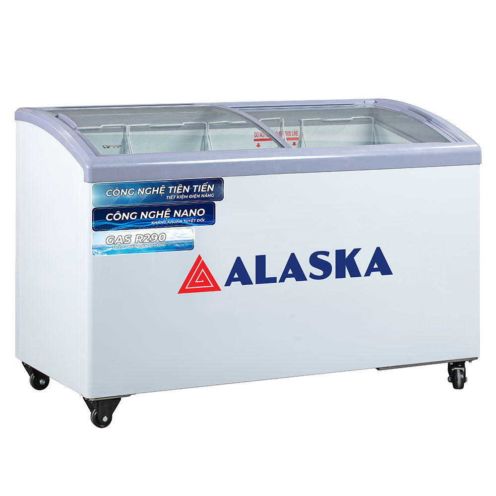 Tủ đông Alaska KC 310 với thiết kế 2 nắp kính cong chịu lực, mở kiểu cửa lùa, có khóa an toàn giúp dễ dàng quan sát cho hoặc lấy thực phẩm trong tủ. Lòng tủ bằng nhôm phẳng lạnh nhanh, chống đóng tuyết tối đa.