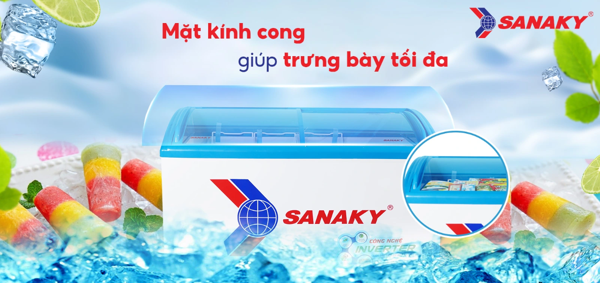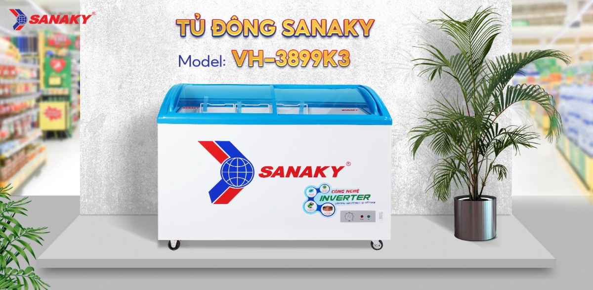 Tủ Đông Sanaky VH-3899K3 là dòng tủ đông kính cong phù hợp sử dụng trưng bày hàng hóa với dung tích 260 Lít được trang bị công nghệ làm lạnh số 1 Việt Nam, tủ được ứng dụng nhiều cho các tiệm tạp hóa, siêu thị, nhà hàng,…